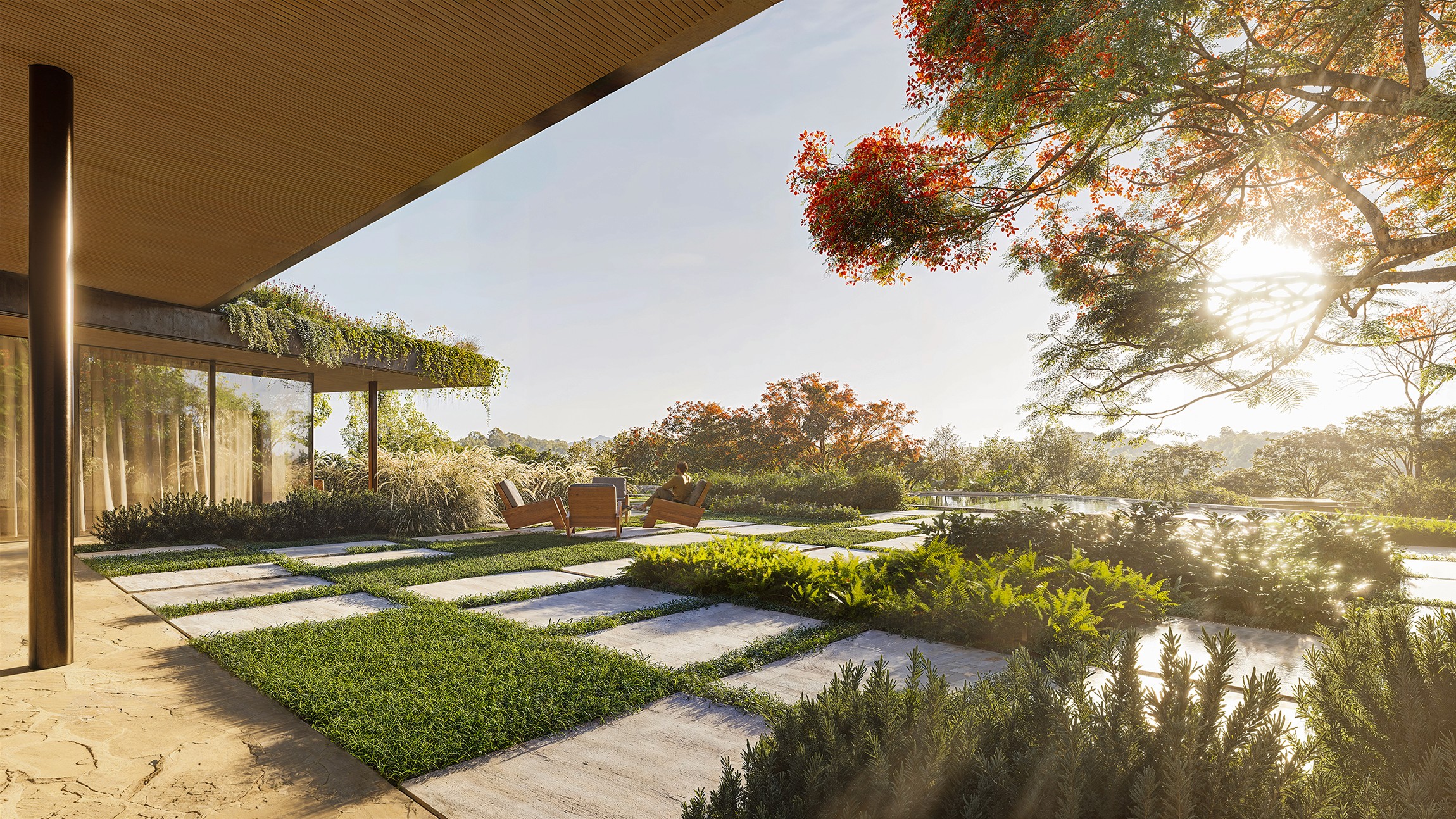 The result is a powerful composition where architecture and landscape enhance one another. A house with strong identity and sensory depth, where the garden amplifies the experience and creates a singular atmosphere.