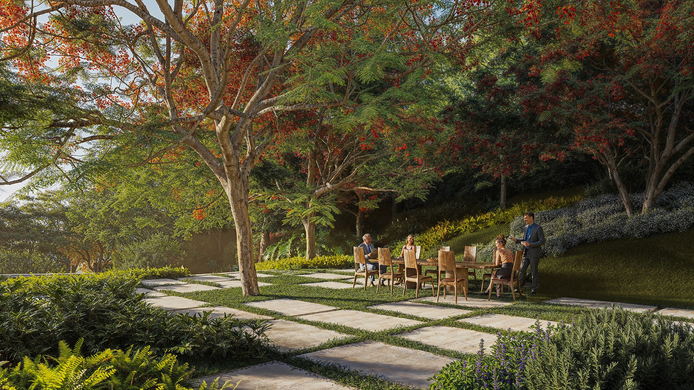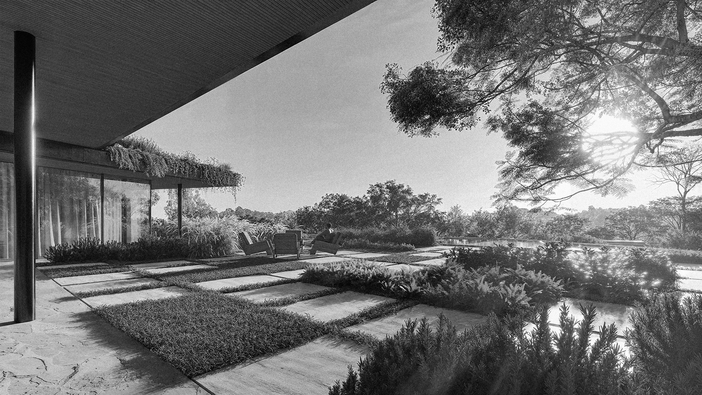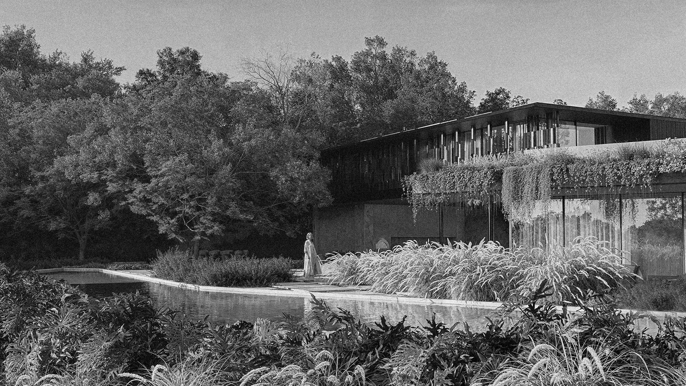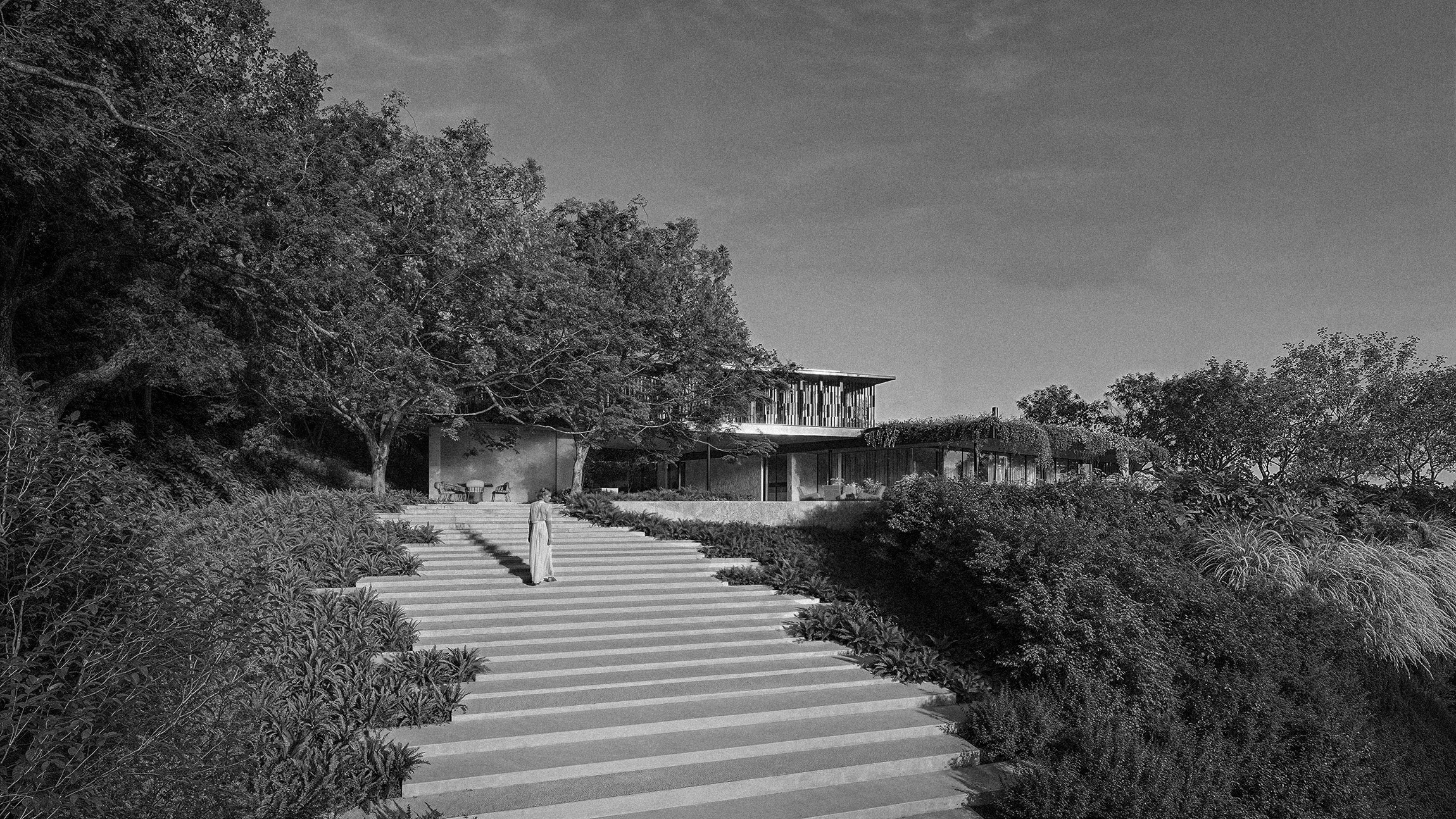 To design a landscape that could engage with a bold and striking architecture without overshadowing it. The challenge was to create expansive and immersive areas that frame the house in new ways, enhancing its scale and expression.