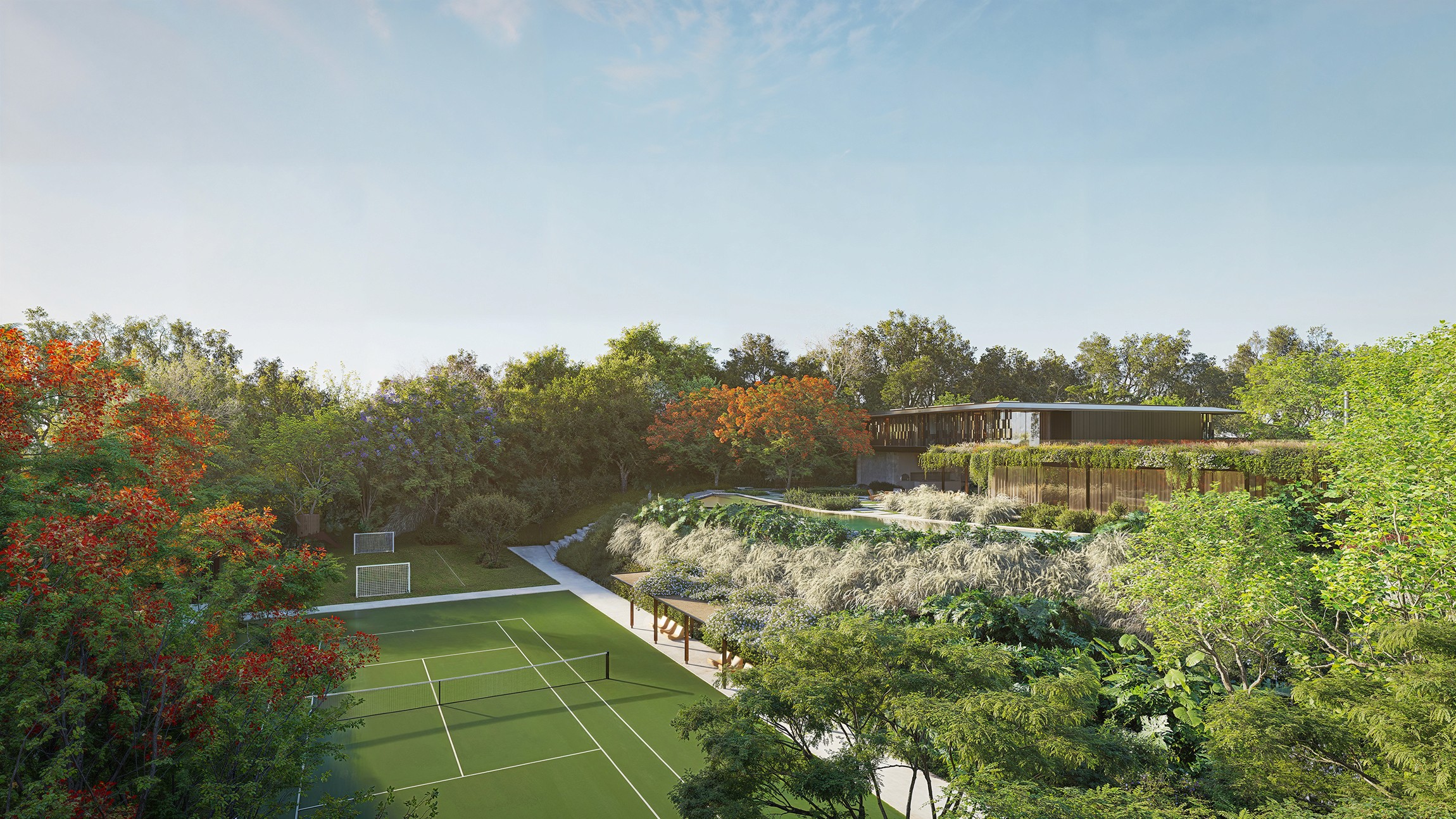 Elements House is defined by a distinctive and expressive architectural language. From the outset, landscape design was conceived as an active part of the project’s narrative, expanding the perception of the house and reinforcing its artistic character.