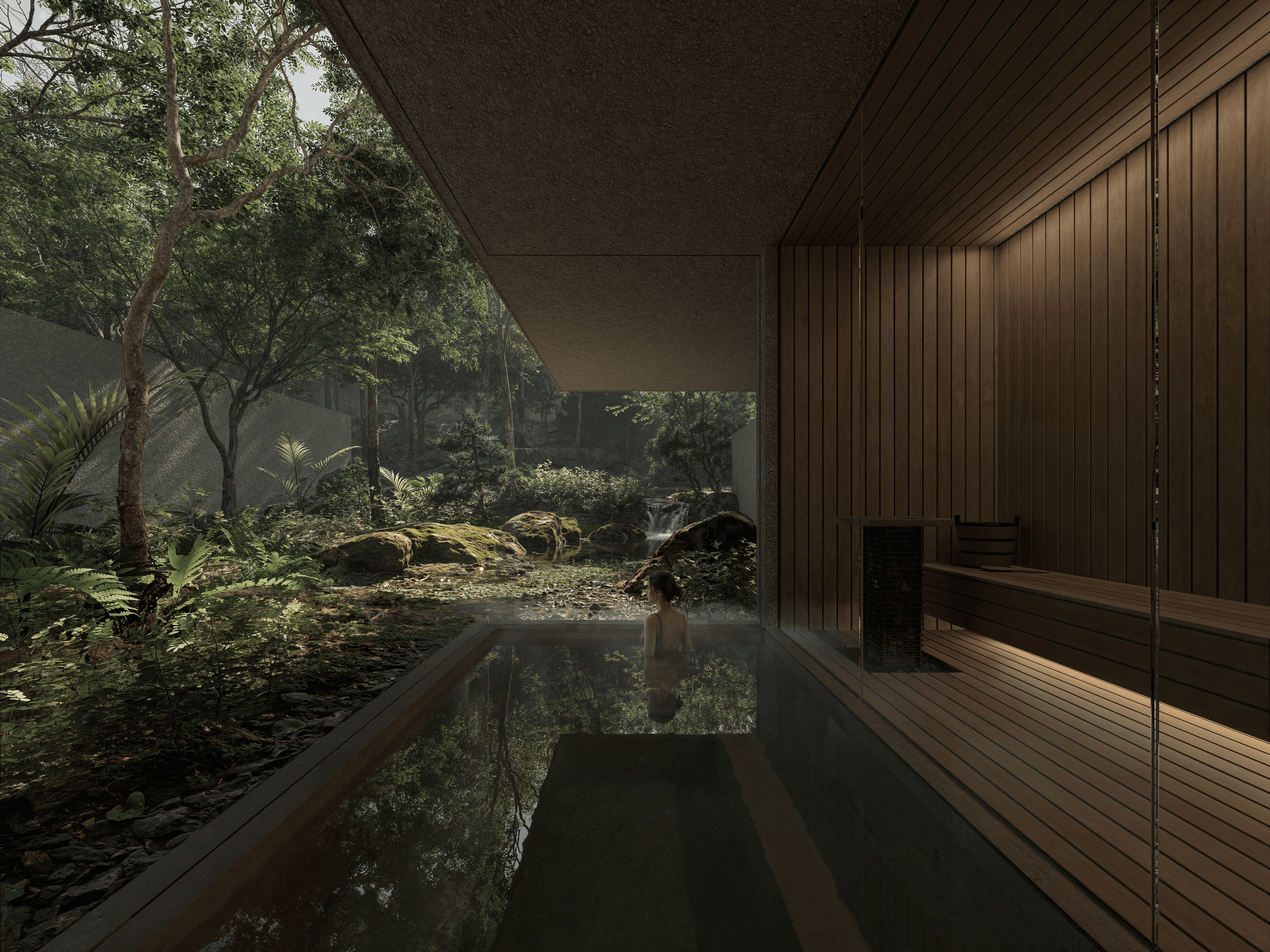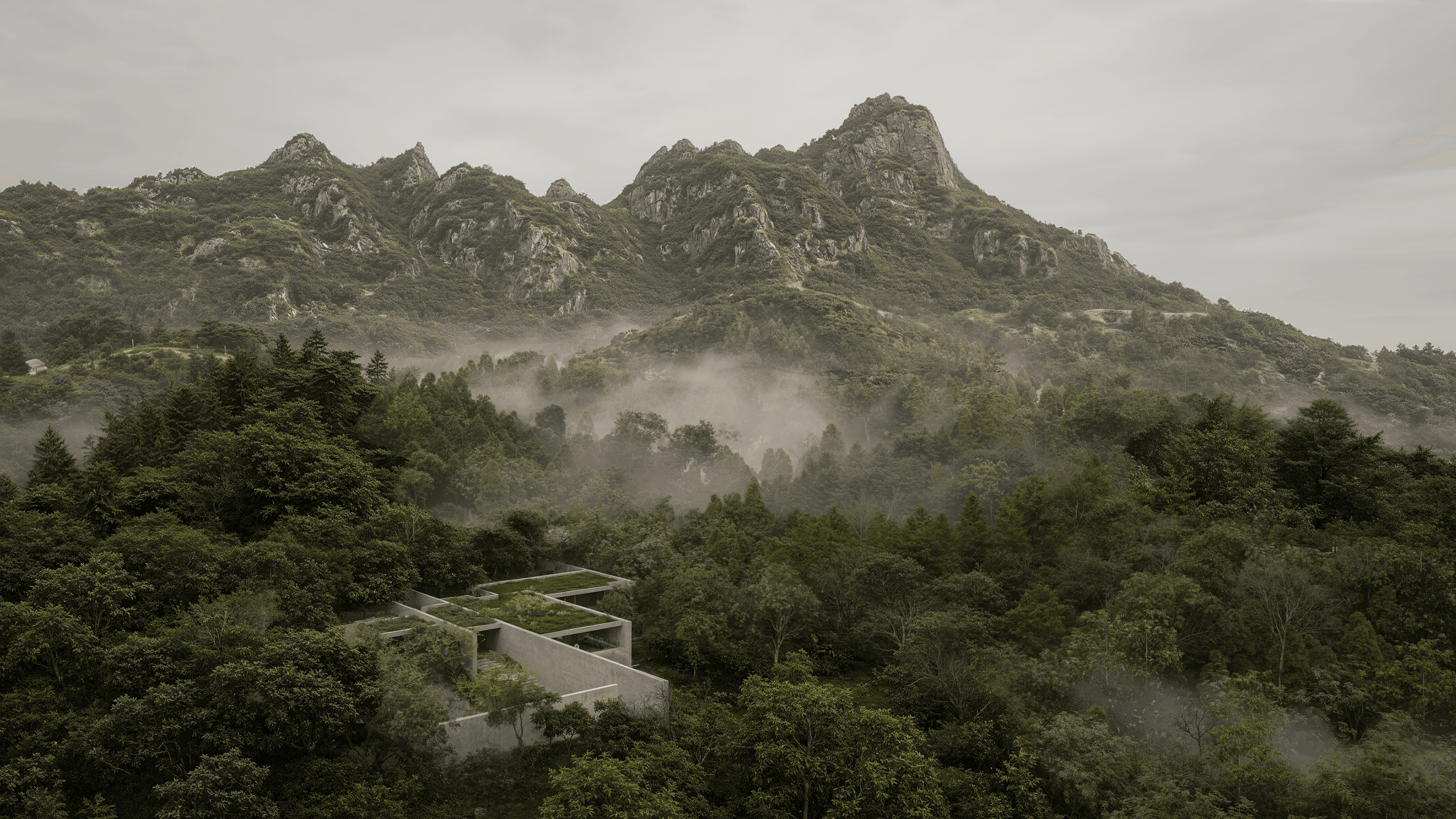 This project was developed for the international architecture competition promoted by Not A Hotel, located on Yakushima Island, Japan. Yakushima is renowned for its extraordinary landscape, characterized by ancient forests, intense rainfall, and a unique climate that profoundly shapes the experience of nature on the island.
